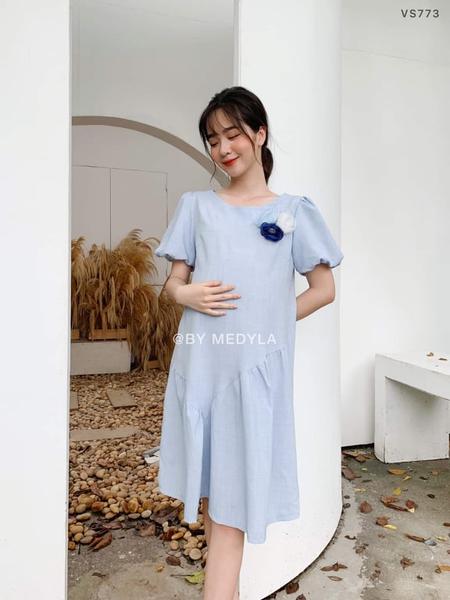Váy xanh đính hoa ở ngực VS773