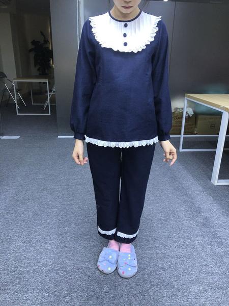 Đồ bộ xanh than cổ trắng DB176