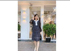 Váy tơ hồng cổ ren trắng VS783