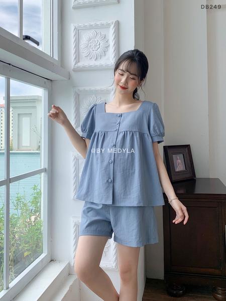 Bộ ngủ đũi xanh cổ vuông H21-DB249