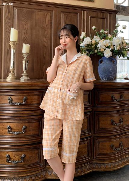 Bộ ngủ pijama kẻ vàng trắng DB248