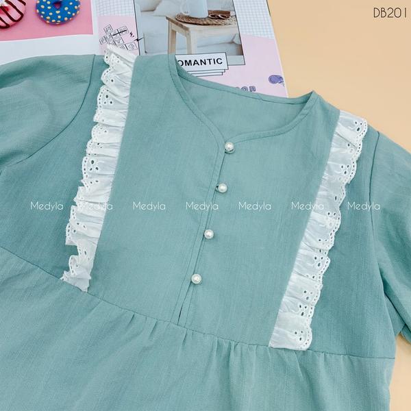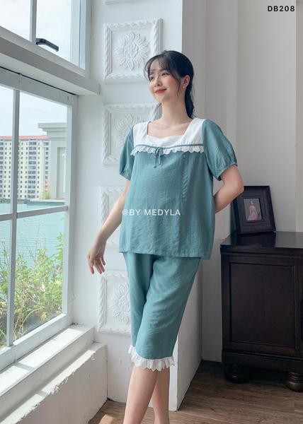 Bộ ngủ xanh cổ vuông trắng DB208