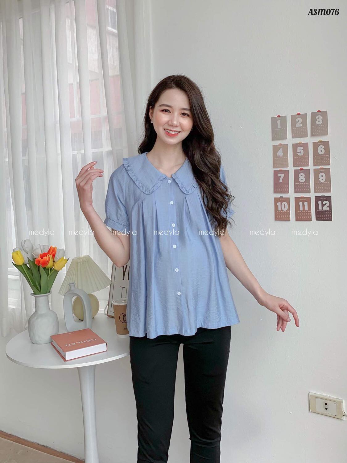 Áo sơ mi cổ bèo đũi xanh ASM076
