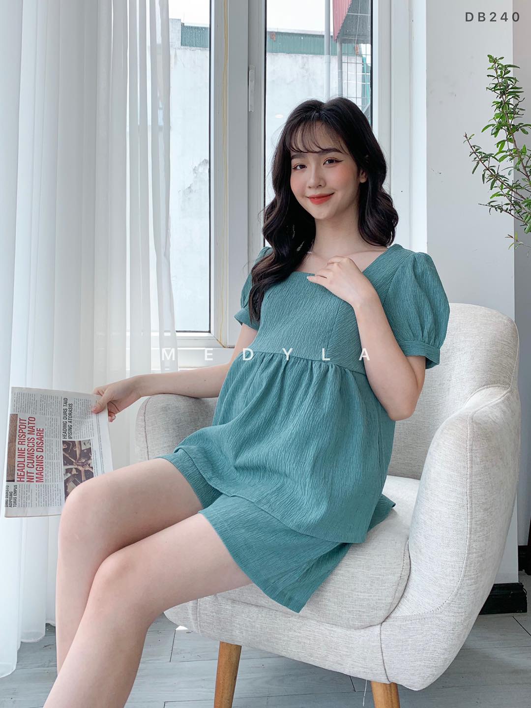 Bộ ngủ đũi xanh cổ vuông H21-DB249