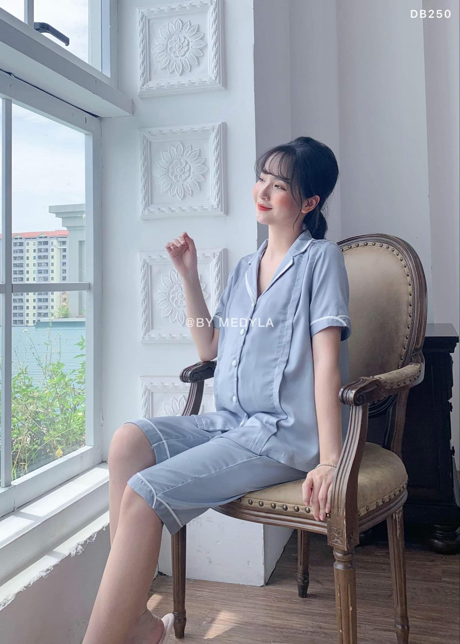 Bộ ngủ xanh ren trắng mí ngực H21-DB262