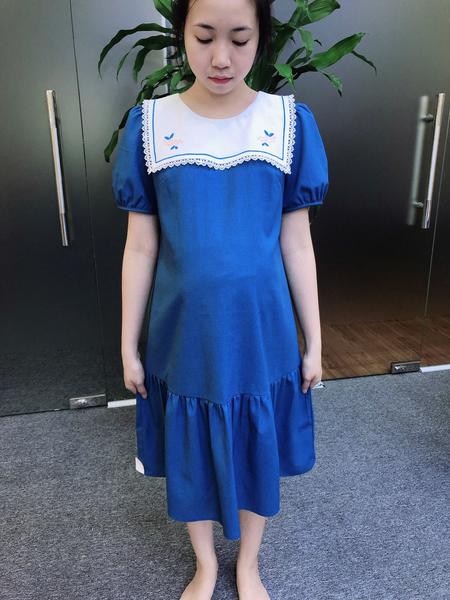 Váy linen xanh cổ trắng thêu hoa T21-VS825