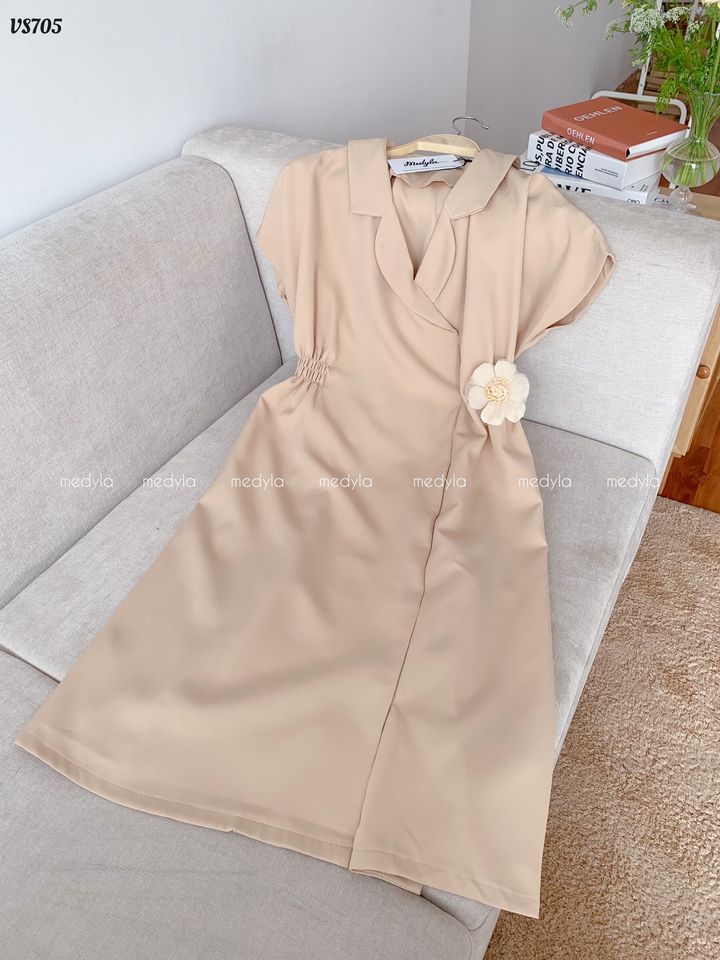 Váy be cổ chéo đính hoa eo VS705